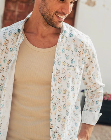 Bulldog mintás ing 100% pamut szatén anyagból.